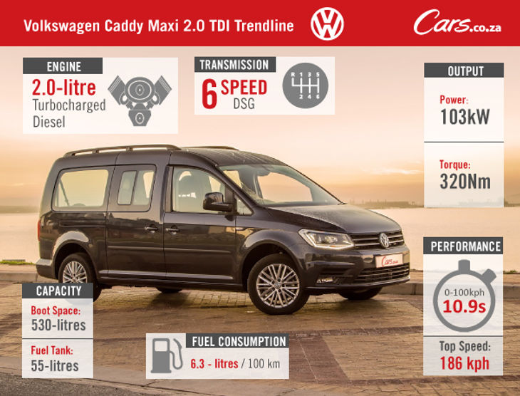 Not only does the 2.0-litre turbodiesel engine perform ably, Volkswagen says this model will sip 6.3 litres per 100 km and in real-world conditions, the claim is not unreasonable. During the Caddy's test period, we repeatedly saw indicated consumption figures in the low sevens and, during the long drive to Saldanha, the figure dipped into the sixes, which was admirable.