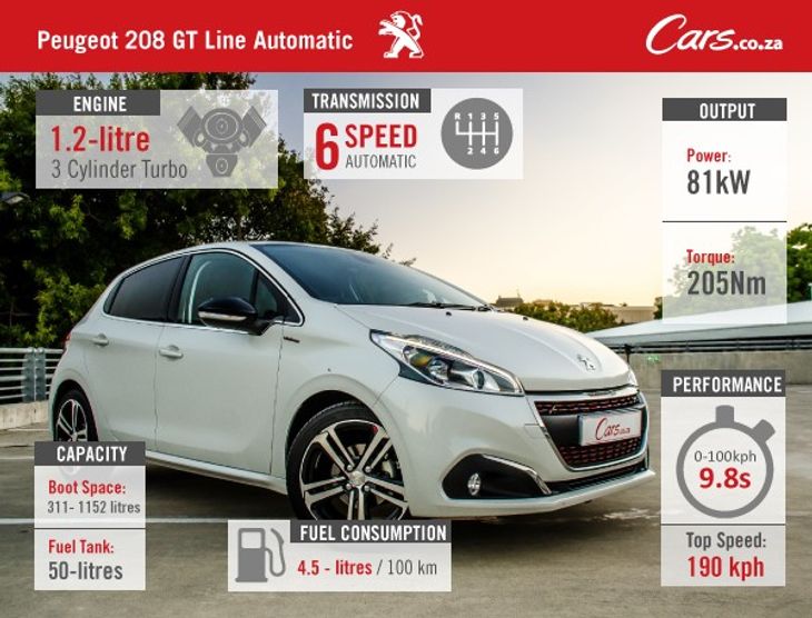 The Peugeot 208 1.2T GT Line costs R304 900, which includes a 3-year/100 000 km warranty as well as a 3-year/45 000 km service plan.