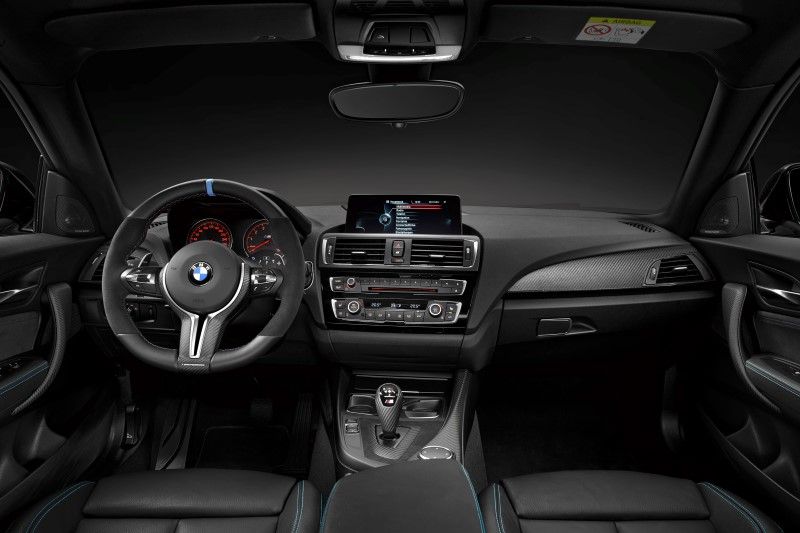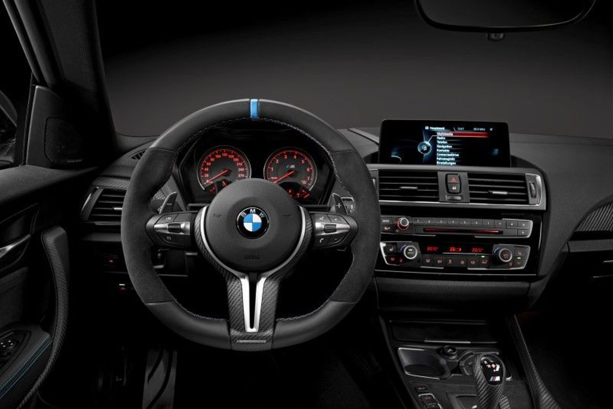 For the interior of the M2 Coupe, buyers can have LED door sill cover strips fitted for the driver and passenger side. M Performance mats can also be had with a non-slip grip surface made of rubber and textile fibre. Stainless steel pedal covers with rubber accents helps prevent slip when working the brake and clutch pedal.