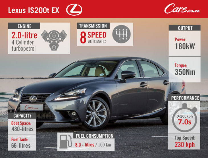 The Lexus IS200t range starts at R524 000 for the E, while this IS200t EX tested here retails for R576 000. All Lexus models gain a 4-year/100 000km service plan with intervals every 15 000km.