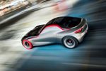 The Opel GT concept features a prominent red signature line and comes fitted with red tyres, both of which are references to the 1928 Opel Motoclub 500 motorcycle that also had red tyres. The only design elements linking this GT concept to the original GT is the long bonnet, absence of a boot lid, central dual exhausts, and its name.