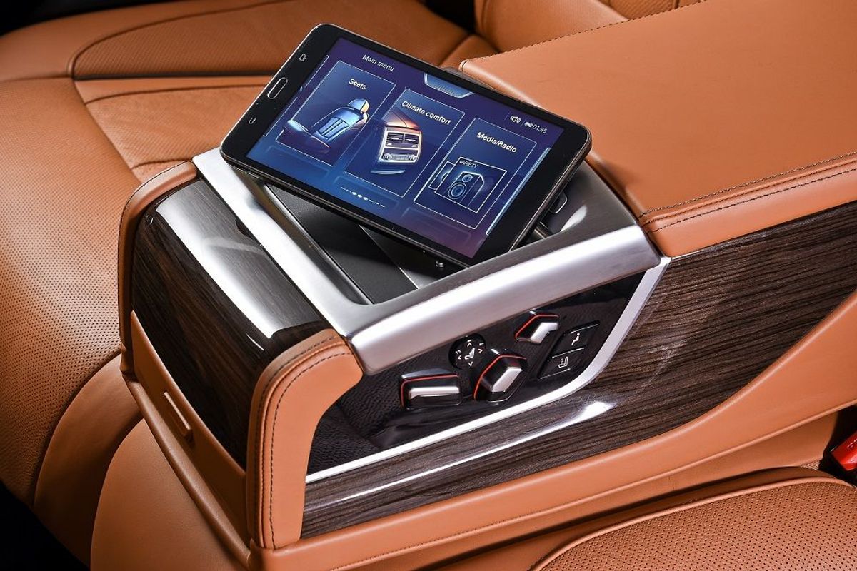 Tablet: Located in the central armrest in the rear is an Android tablet. Using the BMW app, you’re able to control the seats, blinds, lighting and media. Plus you’re able to remove the tablet and take it with you and enjoy normal tablet functionality (email, browsing etc).