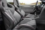 Inside the Volkswagen Golf GTI Clubsport are racing bucket seats featuring tartan fabric upholstery, red stitching, a golf-ball-shaped shifter knob and black headliner. The seat belts have a red line down the middle and there’s plenty splashes of Alcantara around the cabin.